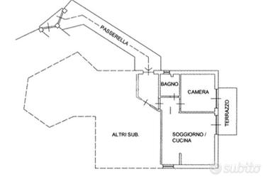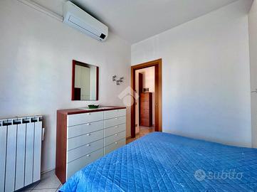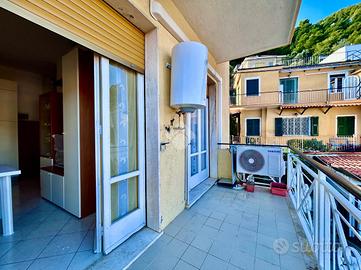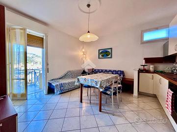 La soluzione presente un'ingresso su disimpegno che conduce alla luminosa zona giorno con angolo cottura e sfogo sul pratico balcone vista mare, di seguito troviamo il bagno finestrato con doccia e la spaziosa comera da letto anch'essa con sfogo sul balcone.