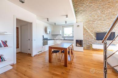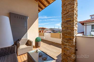 L'appartamento, sito al primo ed ultimo piano, si distingue per il suo stile contemporaneo e per le finiture di pregio scelte con cura in ogni dettaglio. L'ingresso si apre su un ampio soggiorno con cucina a vista, ambiente arioso e luminoso grazie alle grandi aperture che conducono direttamente a un comodo terrazzo, ideale per pranzi all'aperto o momenti di relax.