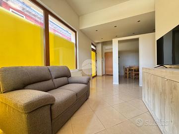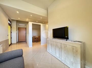 Proponiamo in vendita ampio bilocale di recente costruzione completamente ristrutturato nel 2025 al piano terra con ingresso indipendente, soggiorno e cucina abitabile separata, una camera matrimoniale, antibagno con attacchi per la lavatrice e bagno completo con box doccia. L'appartamento è dotato di impianto di riscaldamento a pompa di calore con due split per riscaldamento e l'aria condizionata . Completano la proprietà due posti auto coperti al piano interrato. L' IMMOBILE VIENE VENDUTO COMPLETAMENTE ARREDATO ED E' LIBERO FIN DA SUBITO.