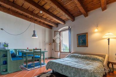 APPARTAMENTO DI CHARME IN DIMORA STORICA DEL XV SECOLO CON PARCO SECOLARE, PISCINA E VISTA LAGO PANORAMICA Situato a Colà di Lazise, all'interno dell'esclusiva dimora storica di 'Villa da Sacco', proponiamo questo elegante appartamento al piano primo in completa vista lago panoramica. Villa da Sacco, conosciuta anche come 'Il castello di Colà', è immersa nei vigneti e nella campagna bucolica dell'entroterra del lago di Garda; la Villa è contornata da un ampio parco condominiale curato e riservato, dove si trovano alberi secolari, belvedere unici da scoprire e una grande piscina appena rifatta, ad uso esclusivo dei condomini. L'appartamento è composto da una zona soggiorno con angolo cottura, ampia e ben illuminata da una grande finestra, esposta ad ovest sul lago di Garda; il pavimento in cotto e le travi a vista originali restaurate conferiscono all'appartamento quel senso di autenticità e charme, unici nel suo genere; nella zona notte troviamo la camera matrimoniale, anch'essa con una grande finestra affacciata sul panorama del lago, e il bagno con doccia. Completano la proprietà un comodo garage di pertinenza con cantina collegata. Soluzione ideale per chi desidera una residenza di charme, immersa nella storia e nella natura, senza rinunciare ai servizi e alle attività che offre il lago di Garda.