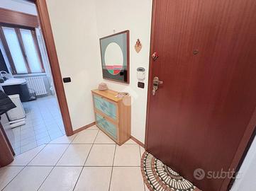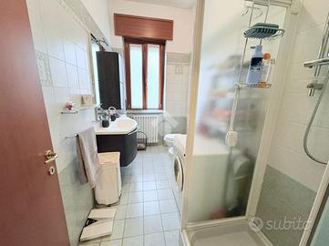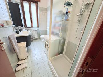L'ingresso dell'abitazione porta direttamente in un bagno finestrato con doccia, comodo e ben rifinito.