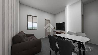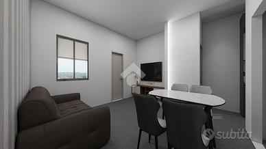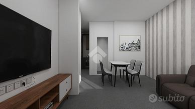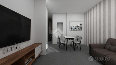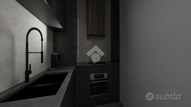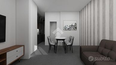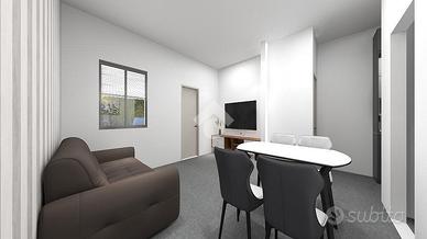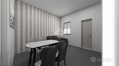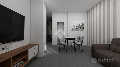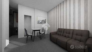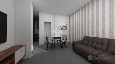 Il progetto prevede la realizzazione di un comodo mini appartamento composto da una zona giorno open space con soggiorno e angolo cottura, una camera matrimoniale e un bagno finestrato con doccia.