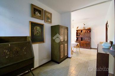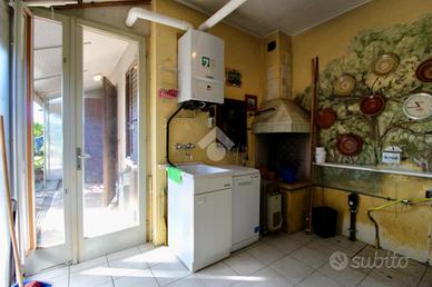 Affianco al porticato d'ingresso troviamo un altro ambiente a servizio dell'appartamento, ovvero, una stanza multifunzione ove è presente un caminetto a legna ed una zona lavanderia.