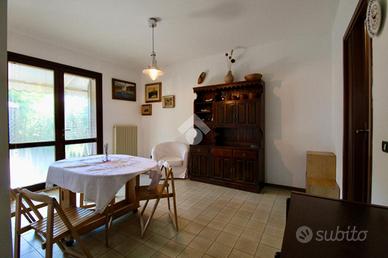 In prossimità dell'ingresso di Lignano, quindi zona pineta, a circa un chilometro dalla spiaggia, troviamo un appartamento al piano terra, in condominio di soli due piani ed otto unità abitative, con ampio giardino di proprietà.
