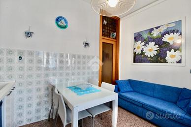 Dal pianerottolo situato al terzo piano, ci troviamo sul terrazzino ad uso comune dove, accediamo all' appartamento mediante un portoncino in legno, che porta al locale pranzo soggiorno completo di cucina, divano, tavolo e sedie per quattro persone.