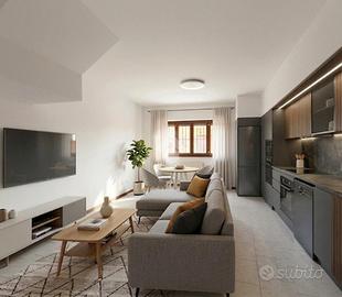 Proponiamo in vendita a Santa Margherita di Lissone, un grazioso bilocale disposto su due livelli, libero da subito e privo di spese comuni. Situato in un contesto tranquillo e riservato, lontano dal traffico cittadino, è ideale per chi desidera comfort e privacy senza rinunciare alla comodità dei servizi. Al piano terra, l'ingresso indipendente con porta blindata conduce alla luminosa zona giorno con cucina a vista, valorizzata da infissi in legno con doppi vetri e inferriate di sicurezza. Una comoda scala accompagna al piano superiore, dove si sviluppa la zona notte composta dalla camera da letto e dal bagno finestrato con doccia, garantendo una netta separazione tra gli ambienti. L'immobile è dotato di riscaldamento autonomo a radiatori e gode della doppia esposizione solare, che assicura un'ottima luminosità durante tutto l'arco della giornata (nord/est per la zona giorno e sud/ovest per ingresso e bagno). Completamente ristrutturato nel 2005, presenta al piano primo una suggestiva finitura con travi in legno a vista. Soluzione ideale sia come prima abitazione sia come investimento. Alcune delle immagini presenti nell'annuncio rappresentano ipotesi progettuali di arredo degli spazi a puro scopo illustrativo.