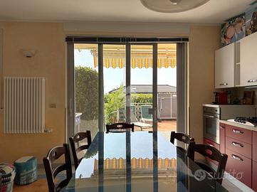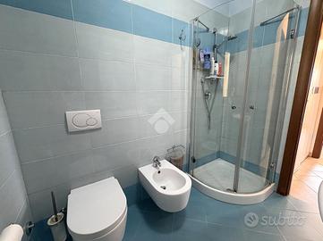 L'immobile, privo di barriere architettoniche, gode di doppia esposizione, che conferisce luminosità e ariosità agli ambienti, ed è rifinito con materiali di qualità: infissi in PVC con doppi vetri, impianto di allarme, condizionamento presente in ogni stanza e riscaldamento termoautonomo a radiatori con caldaia esterna.