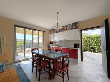 L'appartamento si apre su una luminosa zona giorno con sala e cucina a vista, un bagno finestrato e una camera da letto matrimoniale. La peculiarità della soluzione è rappresentata dallo splendido spazio esterno di circa 90/100 mq, completamente piastrellato e già dotato di allacci acqua e gas, oltre a una zona barbecue con griglia in pietra, perfetta per pranzi e cene all'aperto in totale comodità e convivialità.