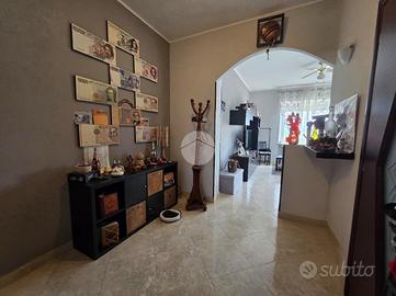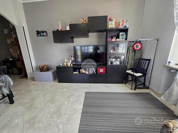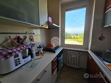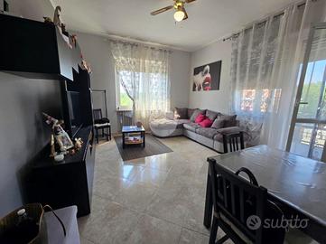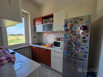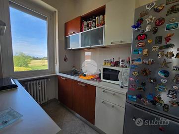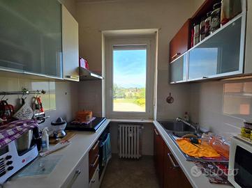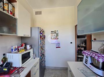 L'ingresso, ampio e funzionale, disimpegna tutti gli ambienti della casa. La zona giorno, luminosa e di generose dimensioni, è servita da finestra e portafinestra con accesso al primo balcone, già completo di tende invernali a rullo. Adiacente si trova il cucinotto, anch'esso dotato di finestra.