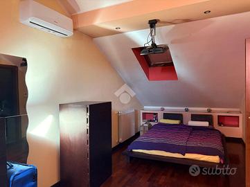 Attraverso una scala interna si accede al piano superiore, dedicato alla zona notte, composta da camera matrimoniale ampia e accogliente, impreziosita da travi a vista che conferiscono calore all'ambiente. A servizio della camera è presente un secondo bagno con vasca.