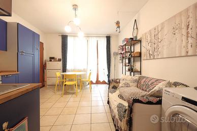 L'appartamento è composto da una camera da letto accogliente e un bagno finestrato con doccia. La luminosa zona giorno è dotata di uno sfogo affacciato sul portico con vista sulla piscina, creando un ambiente perfetto per trascorrere del tempo in compagnia. Situato al piano terra, l'immobile è facilmente accessibile e viene fornito di un ampio garage di proprietà nell'interrato.