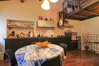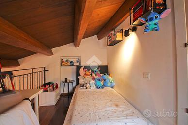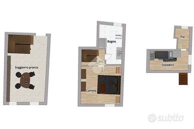 Dal soggiorno, una scala vi conduce al piano superiore, dove un soppalco attualmente utilizzato come seconda camera offre ulteriore flessibilità abitativa. Qui troverete anche un pratico ripostiglio. La soluzione è stata completamente ristrutturata nel 2006.
