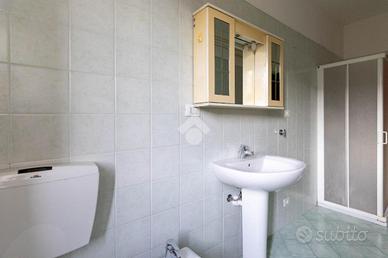 Il bagno finestrato è completo di box doccia.