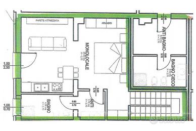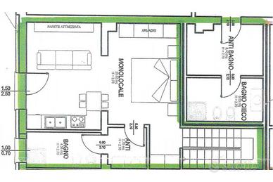 L'appartamento è progettato per ottimizzare gli spazi, permettendo una facile divisione tra zona giorno e zona notte. Due pratici ripostigli aggiungono ulteriore spazio per l'organizzazione domestica. L'antibagno e il bagno finestrato assicurano comfort e luminosità. Una comoda scala in muratura collega il primo piano dove troviamo un secondo bagno ed ulteriore locale multifunzione ( camera/studio)