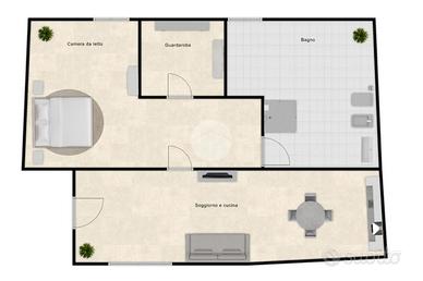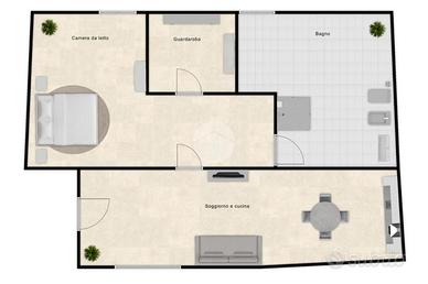 L'appartamento si presenterà composto da: comoda zona giorno open space suddivisa in angolo cottura, zona pranzo e comodo angolo relax arredabile in base alle proprie esigenze.