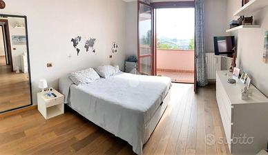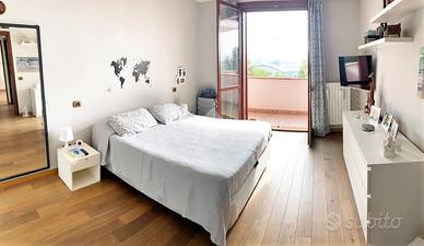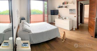 La zona notte si compone di camera matrimoniale, accessoriata di secondo balcone, e servizio con box doccia multifunzione.