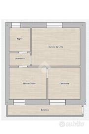 L'ingresso si apre su un luminoso ambiente unico salone-cucina, uno spazio funzionale e ben distribuito, ideale per vivere la casa in modo pratico e conviviale. Accanto alla zona giorno è stata ricavata una comoda cameretta, perfetta come stanza per bambini, studio o ambiente multifunzionale, a seconda delle esigenze.