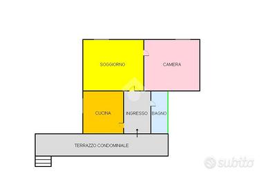 La soluzione si sviluppa su unico livello ed è composta da ingresso, cucina abitabile, soggiorno, camera da letto, bagno finestrato con box doccia.