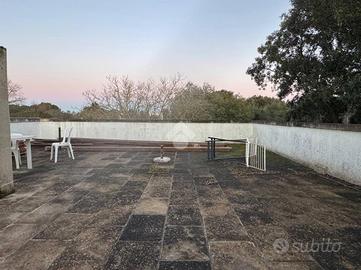 L'abitazione si compone di un ingresso con piccola zona giorno, angolo cottura, bagno con doccia e camera da letto. All'esterno è presente un'area adibita a parcheggio auto, condivisa con gli altri inquilini della masseria.