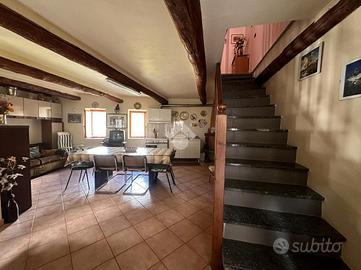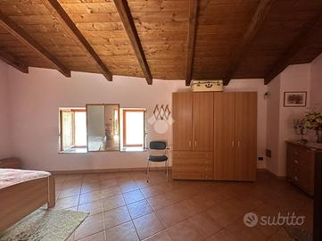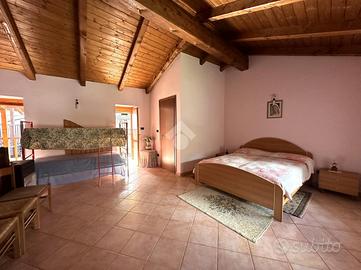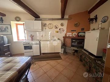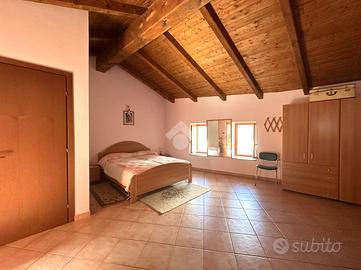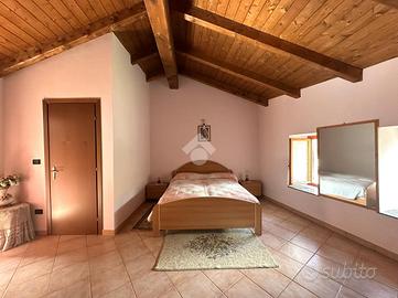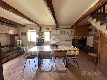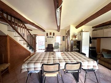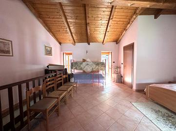 Casa semi dipendente situata nel comune di Mattie, in zona tranquilla e residenziale. L'immobile si sviluppa su due piani abitativi. L'ingresso principale si apre su ampio soggiorno con zona living sulla cucina, adiacente è presente un bagno finestrato dotato di box doccia. Al primo piano tramite vano scala interno, si accede alla zona notte che comprende una camera da letto che gode di un accesso diretto al balcone, oltre alla possibilità di avere un secondo bagno finestrato. Il riscaldamento è gestito da un camino a legna. Gli infissi sono in legno con vetrocamera. Completa la proprietà una cantina.