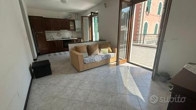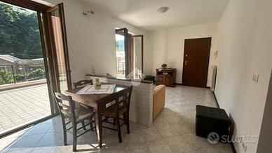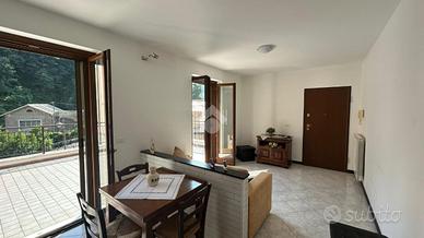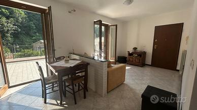 Mele. Strada per Acquasanta Terme. Proponiamo nel complesso de 'I Ciliegi' appartamento con accesso indipendente composto da ampio ingresso in soggiorno aperto sull'angolo cottura arredato, camera matrimoniale grande, bagno con doccia e dispensa. Splendida terrazza al piano di proprietà di 34 metri quadrati ottimamente esposta e soleggiata. Riscaldamento autonomo. Porta blindata. Tenda da sole. Predisposizione per condizionamento d'aria.