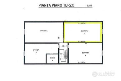 La mansarda è caratterizzata da travi a vista, due finestre Velux che garantiscono un'ottima luminosità naturale.
