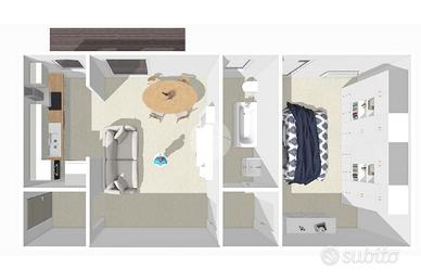 L'ingresso, con disimpegno, conduce alla zona giorno: un ambiente confortevole composto da soggiorno e cucina a vista, che si apre su un balcone abitabile, ideale per momenti di relax all'aperto. La cucina, semplice e funzionale, si presta facilmente a eventuali personalizzazioni.