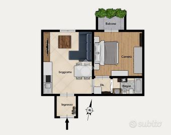 L'appartamento si compone di ingresso, zona giorno con cucina a vista, disimpegno, bagno con vasca e camera matrimoniale con accesso a un grazioso balconcino che affaccia sulla vivace piazza Dergano.