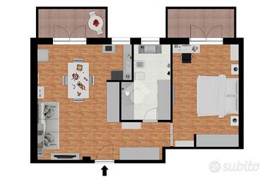 L'appartamento, silenzioso e ben distribuito, si apre su un accogliente soggiorno con angolo cottura e accesso al primo balcone, ideale per godersi momenti di relax all'aperto. La zona notte comprende una spaziosa camera da letto con grande armadiatura su misura e affaccio su un secondo balcone. Completa la proprietà un bagno finestrato con box doccia.