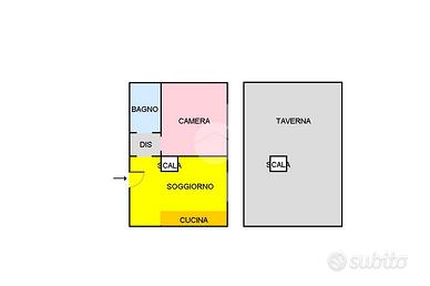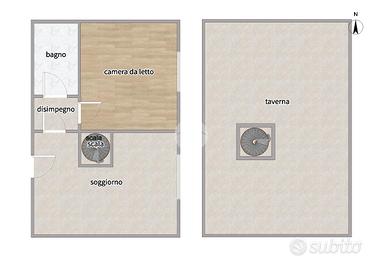 Dal soggiorno, una scala a chiocciola conduce a una taverna di circa 40 mq, perfetta come zona relax, studio o spazio hobby..