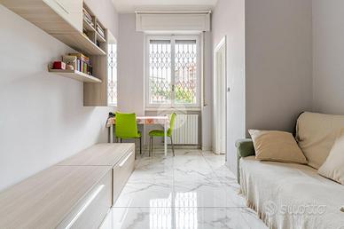 L'appartamento si presenta TOTALMENTE RISTRUTTURATO, con pavimentazione gres effetto marmo in tutti gli ambienti, che dona luminosità, sobrietà ed eleganza decorativa a tutte le stanze; Inoltre, infissi in vetro PVC. Riscaldamento centralizzato.