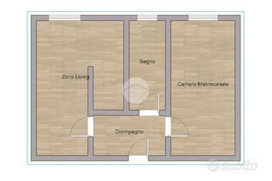 Ingresso in disimpegno, dal quale abbiamo accesso ai vari ambienti della casa, ove in primis troviamo subito sulla sinistra la zona living, finestrata con affaccio su Via Giovanni Fantoni e con cucina separata. Segue, con accesso sempre dal disimpegno e con medesimo affaccio la camera matrimoniale finestrata. Per finire, bagno finestrato con box doccia.
