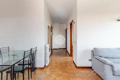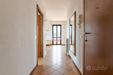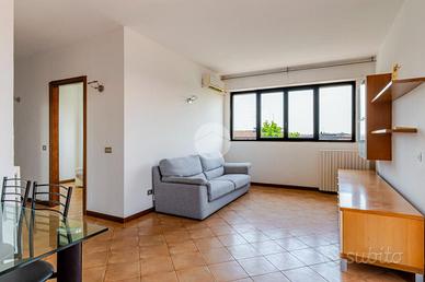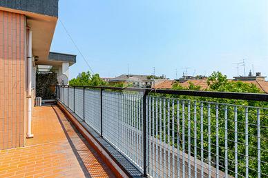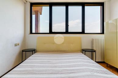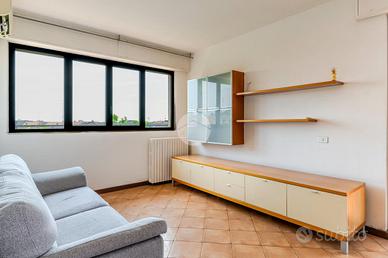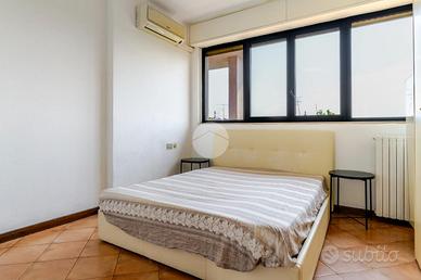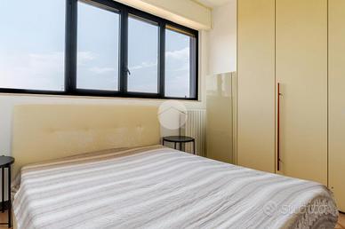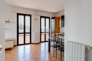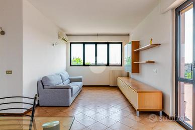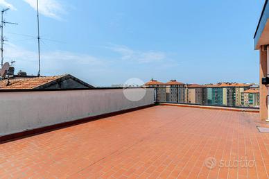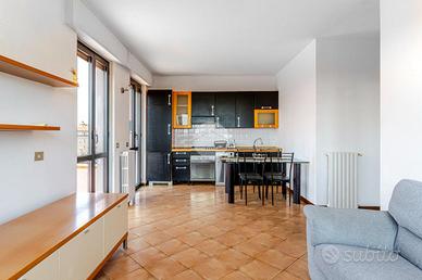 Ingresso tramite corridoio che permette l'accesso ai vari ambienti della casa : in primis troviamo l'ampia e luminosa zona living, con cucina a vista, e dalla quale tramite doppia porta finestra abbiamo accesso al plus della casa :il grande TERRAZZO VIVIBILE, con vista aperta e panoramica sullo skyline milanese e che, sviluppandosi in maniera regolare sia in lunghezza che in larghezza, dà la possibilità di poter collocare diverse soluzioni d'arredo al fine di poter sfruttare questo ambiente a pieno, così da poter diventare una vera e propria estensione della sala, all'aperto. Proseguendo, accediamo alla zona notte dell'appartamento, ove troviamo la camera matrimoniale, finestrata e anch'essa con accesso al primo balcone citato dell'appartamento. Infine, bagno finestrato con box doccia.