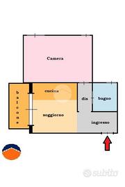 L'immobile è così composto: ingresso in disimpegno, cucina con accesso diretto al balcone, arredato con tavolino e sedie, ampia camera da letto e bagno finestrato.