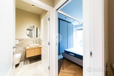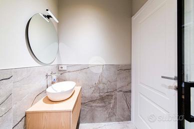 L'appartamento si presenterà TOTALMENTE RISTRUTTURATO A NUOVO E MAI ABITATO, particolare attenzione è stata posta sul Design con uno studio di colori ed illuminazione volto ad esaltare i dettagli e la scelta essenziale dei materiali di qualità, dal parquet con posa a spina italiana all'illuminazione intima e delicata pronta ad esaltare la personalità e la ricercatezza d