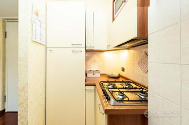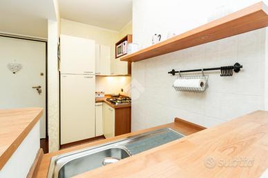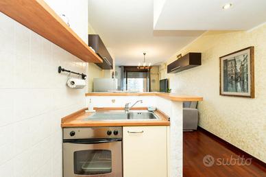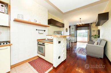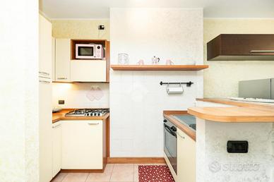 L'ingresso si apre su una luminosa zona giorno, arricchita da un comodo angolo cottura e dall'accesso diretto al balcone, da cui si può ammirare una piacevole vista sul verde. La camera matrimoniale è spaziosa e accogliente, mentre un disimpegno conduce al bagno, ampio, e rifinito con gusto.