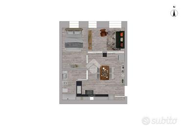 L'appartamento, completamente ristrutturato con finiture moderne, è composto da ingresso su cucina abitabile, soggiorno, camera matrimoniale e bagno con box doccia.