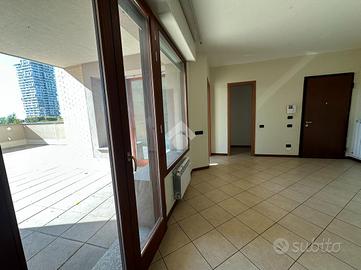 Luminoso e ampio bilocale con terrazzo di 80 m² - Esposizione a sud In contesto tranquillo e ben servito, proponiamo in vendita un bilocale di 75 m² interni, caratterizzato da ambienti spaziosi e da una splendida esposizione a sud, che garantisce ottima luminosità durante tutto il giorno. L'appartamento è così composto: Ampio soggiorno con accesso diretto al terrazzo principale di 80 m², ideale per momenti di relax e convivialità all'aperto Cucina abitabile con affaccio su un comodo terrazzino Spaziosa camera da letto matrimoniale con ulteriore terrazzino privato Bagno finestrato Pratico ripostiglio L'immobile è servito da due ascensori, uno dei quali montacarichi, molto comodo per spostamenti con carichi pesanti o ingombranti. Il riscaldamento è centralizzato con teleriscaldamento, una soluzione efficiente e sostenibile, che consente la regolazione autonoma della temperatura tramite termostato, garantendo al contempo spese condominiali molto contenute. Possibilità di acquistare un box ampio a parte al prezzo di 37.000. Soluzione ideale per chi desidera grandi spazi interni ed esterni, in una zona tranquilla ma ben collegata.