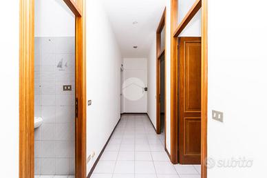 Ingresso in corridoio che permette l'accesso ai vari ambienti della casa e dove rispettivamente troviamo, subito davanti, l'ampio soggiorno finestrato con piacevole affaccio su corte interna seguito, con medesimo affaccio ed esposizione, dall'ampia camera matrimoniale finestrata. Proseguendo, sull'esposizione opposta, troviamo il cucinotto finestrato, con affaccio sempre su corte interna ma dal lato opposto. Infine, i