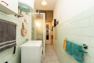 Appartamento: Porta blindata, altezza soffitti 290 cm, predisposizione videocitofono, connessione fibra FTTH già attiva, bagno ripavimentato con box doccia e spazio lavatrice, ripostiglio (facilmente trasformabile in secondo bagno/lavanderia), tapparelle in PVC, zanzariere, veneziane, interruttori/prese/maniglie/vetri porte rinnovati, caloriferi a norma, teleriscaldamento (nessuna caldaia, zero emissioni).