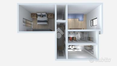 Questo appartamento si distingue anche per la sua metratura più generosa rispetto ad altri bilocali simili in zona. Lo si nota subito entrando nella cucina abitabile, ben più larga di quanto appaia nella planimetria, offrendo uno spazio vivibile e funzionale.
