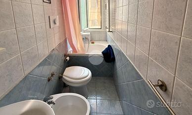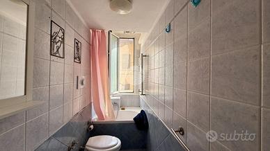 L'ingresso si apre su un disimpegno funzionale, che accompagna al bagno finestrato, completo di un comodo ripostiglio in quota, perfetto per ottimizzare gli spazi.