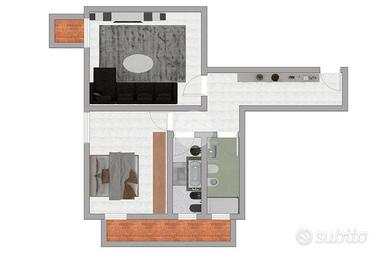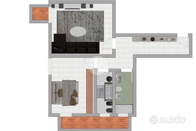 Proponiamo in vendita un bilocale di 73 mq, ottenuto da un frazionamento di proprietà.