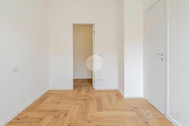 L'intera abitazione è completamente ristrutturata e mai abitata, rifinita con parquet a spina di pesce in quasi tutti gli ambienti, ad eccezione del bagno, dove è stato posato un elegante grès porcellanato. Inoltre infissi in PVC con doppio vetro, tapparelle elettriche e aria condizionata fan-coil