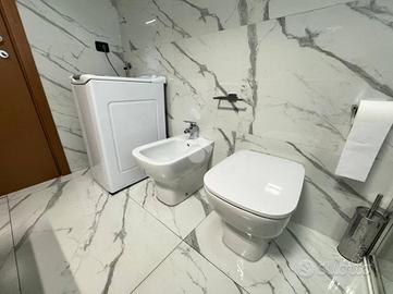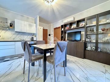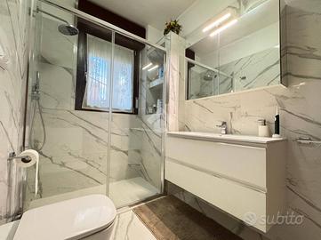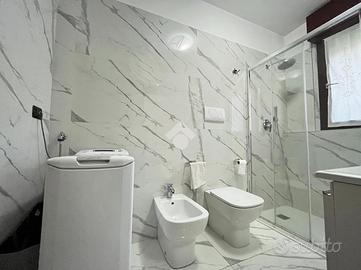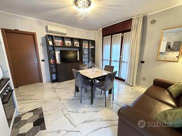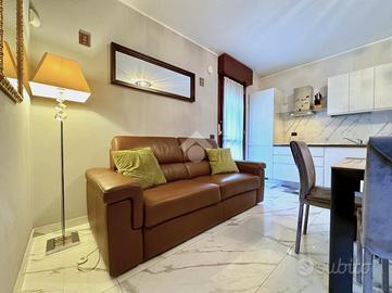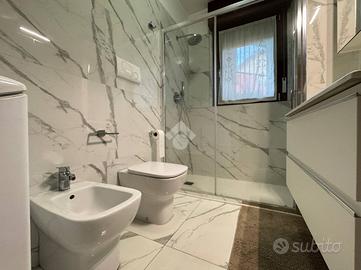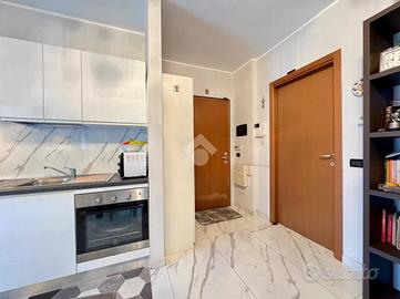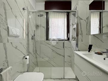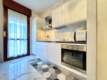 Grazie alla ristrutturazione effettuata nel 2021 l'appartamento si presenta in ottime condizioni con porta d'ingresso blindata, infissi in legno con doppio vetro, acqua calda centralizzata, riscaldamento centralizzato a pavimento, impianto di aria condizionata e impianto d'allarme. Nella zona giorno e in bagno troviamo pavimentazione e rivestimenti in ceramica effetto marmo e in parquet nella camera da letto.