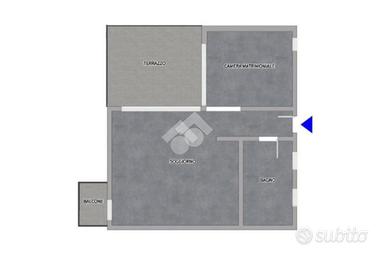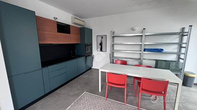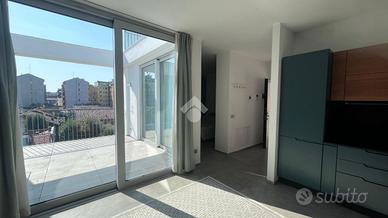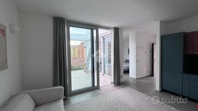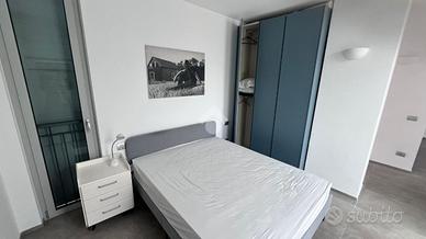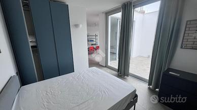 L'appartamento ha ingresso su disimpegno che porta a un luminoso soggiorno con ampie vetrate dalle quali si ha accesso ad un terrazzo, una spaziosa camera matrimoniale e un bagno finestrato con box doccia.