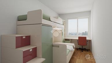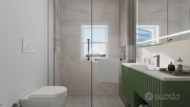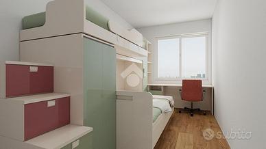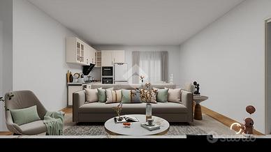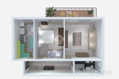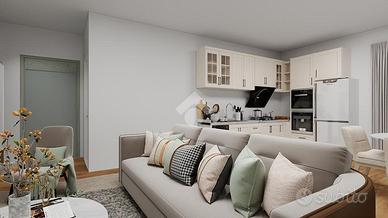 L'appartamento si compone di ingresso su corridorio, soggiorno con accesso a un ampio balcone, cucina abitabile, camera matrimoniale con secondo accesso al balcone e bagno finestrato con vasca.