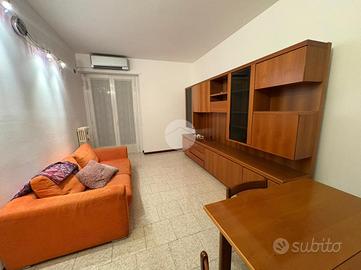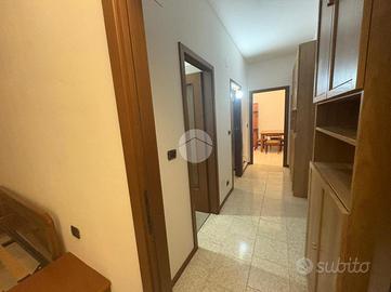 Ingresso in corridoio che ci consente l'accesso ai vari ambienti della casa. Sul lato destro troviamo l'ampia e luminosa zona living, con accesso al balcone, che corre lungo tutti gli ambienti e affaccia su Viale Pisa, garantendo luminosità e piacevole vista aperta.