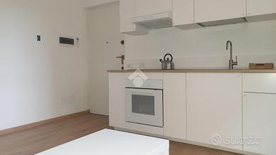 L'appartamento si trova al pian terreno, l'ingresso conduce al soggiorno con angolo cottura a vista.