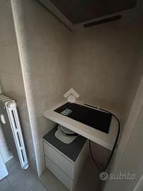 Il bilocale dispone di un bagno completo di tutti i comfort, inclusa la lavatrice.